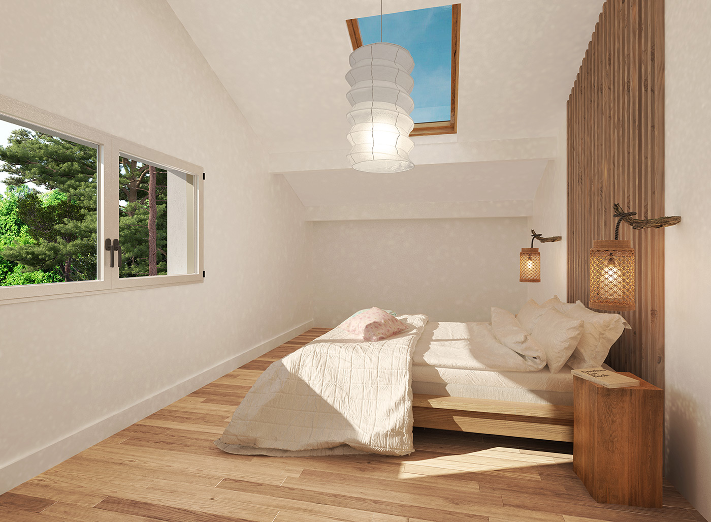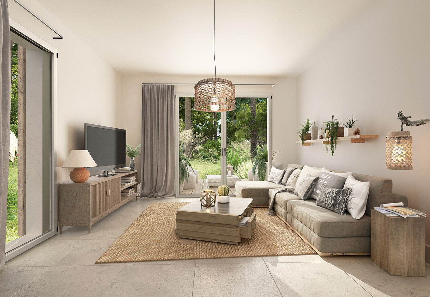 Les maisons de GEMME, parfaitement intégrées à leur environnement, prolongent l’esprit bien-être sur leurs extérieurs : une terrasse donnant sur un jardin paysagé, sans vis à vis et avec vue sur l’espace boisé.